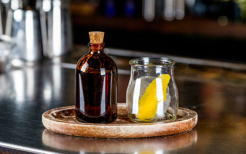 Bourbon, cynar and cherry liqueur with fresh raspberries.