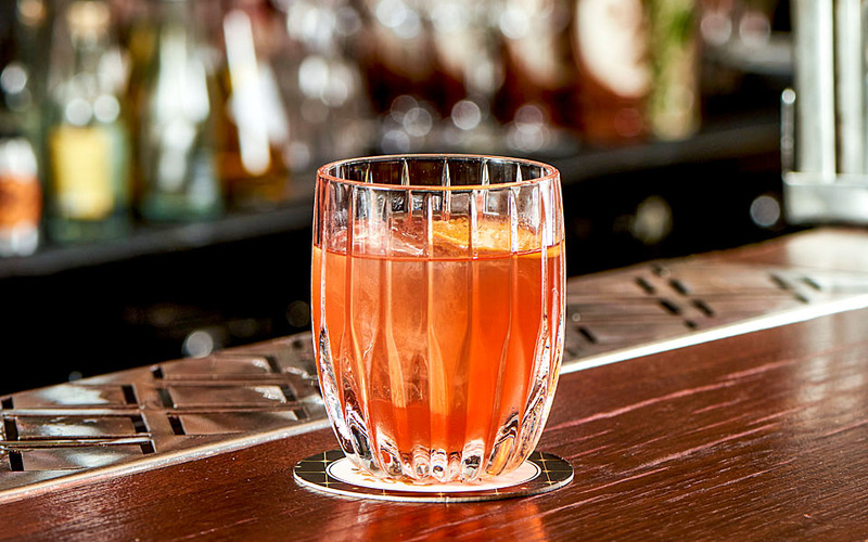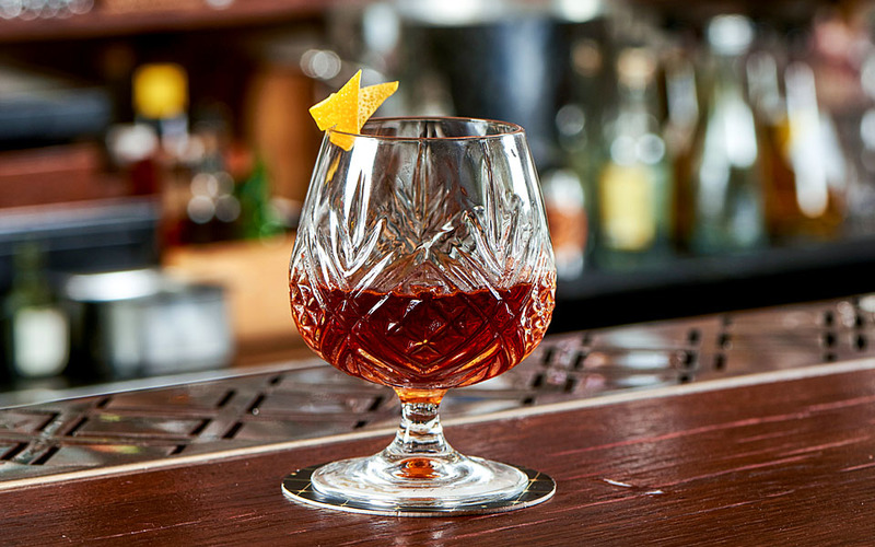 Mezcal, Highland single malt whisky, maraschino liqueur and angostura bitters.