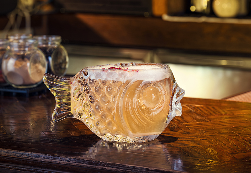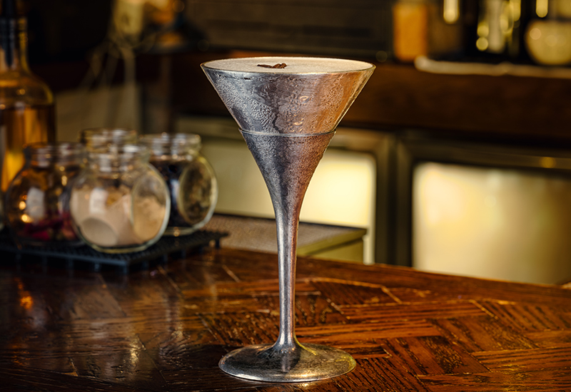 Suraj, of course, is being coy when he calls this mix macabre. The brown color perhaps might not be to everyone’s liking, but the combination of tonka bean-infused cognac, absinthe, and bitters will definitely please fans of strong and unforgettable drinks.