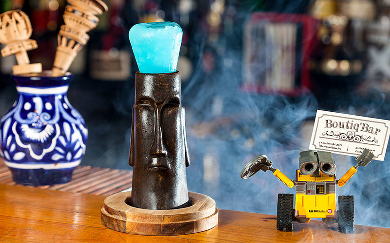 Dark and aged rum, blue curaçao, peach liqueur, ginger beer, and lime juice.